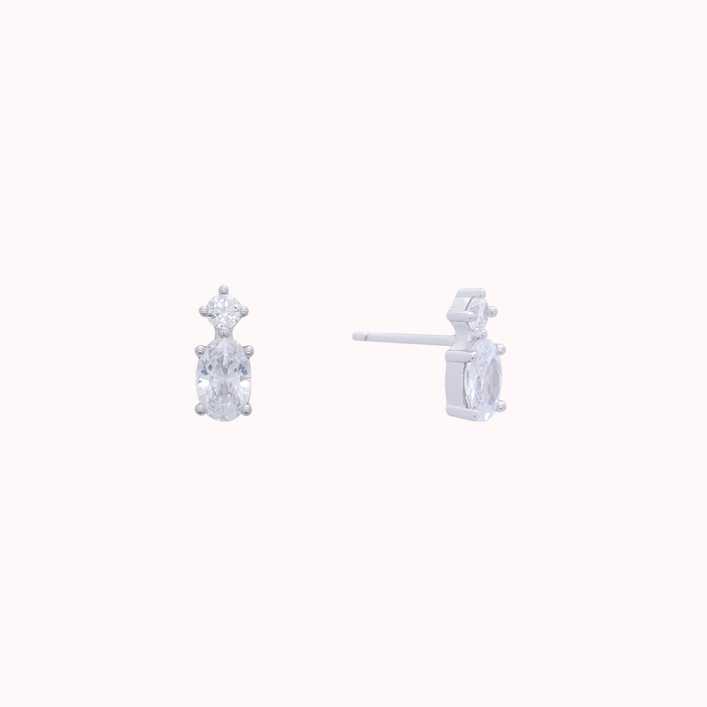 Aretes double drop rodio